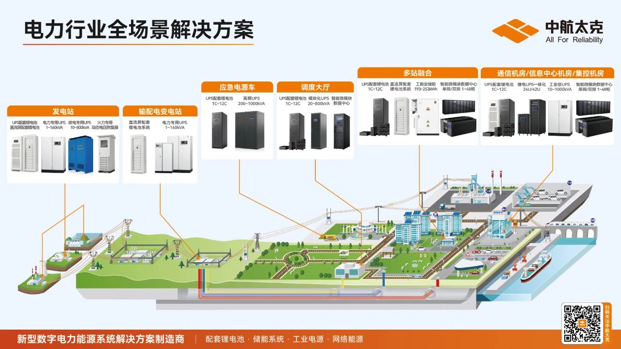 作为新型数字电力能源系统的深耕者,中航太克深度融合电力电子技术,致力于为电力行业发电、输电、配电、用电等关键环节提供极致可靠的UPS与锂电系统解决方案。