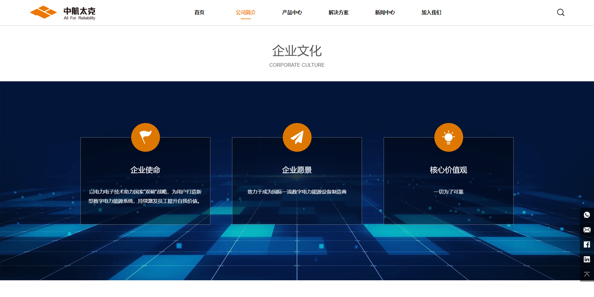 在双碳经济、新基建、国产化的大趋势下,以互联网+、数字经济管理理念,中航太克洞察行业发展新形势,围绕储能领域、工业制造领域、网络能源领域,不断创新新技术、新产品、新商业模式,致力于成为国际一流数字电力能源设备制造商。经周密的筹备,网站更新迭代,全新官网于2022年7月1日正式上线!