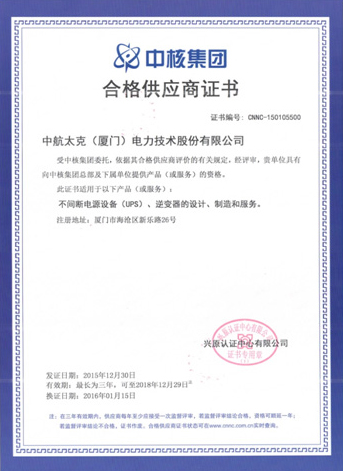 此次通过中核集团的合格供应商评审,再次证明公司的各项技术、管理水平达到了核电产品供应商的要求,公司具备向中核集团、中广核集团及其下属单位提供UPS不间断电源、逆变器的资格和能力。