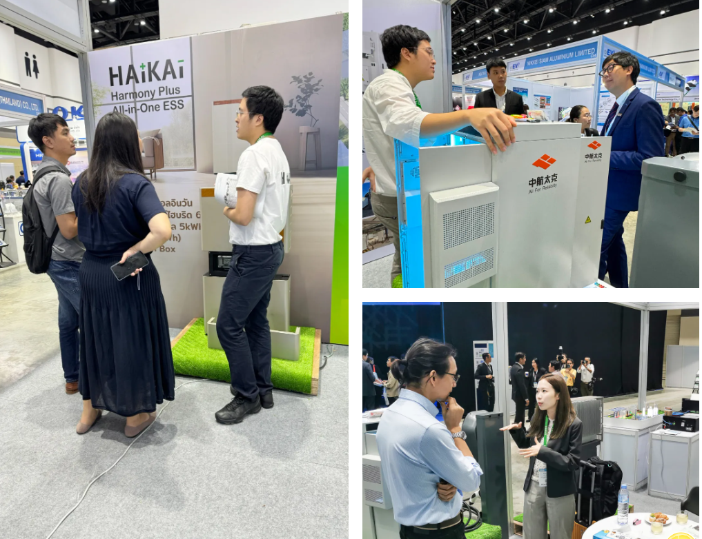 展会期间,中航太克展位吸引了众多业主方、采购方、能源投资方驻足观看,并与多家国际知名企业进行了深入交流并详细介绍产品特性和应用场景。此外,EGAT泰国电力局数字电力新能源商业部部长、MEA泰国首都电力公司领导、PEA泰国地方电力公司领导亲临中航太克展位,与专业人员就绿色低碳能源利用进行了热烈讨论。
